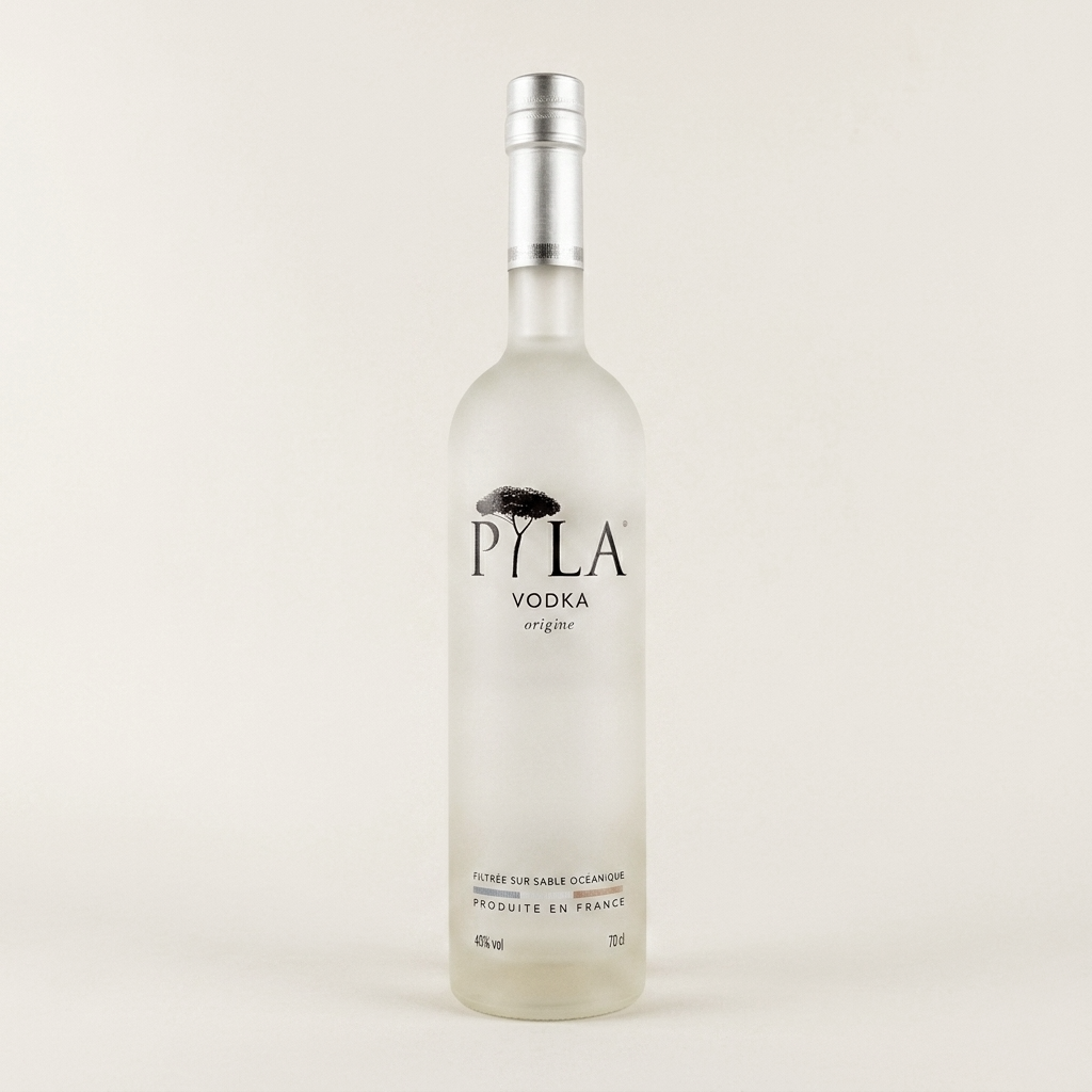 Issue de blé français et distillée en 5 étapes, la Vodka Pyla de la maison Valdronne se distingue par sa pureté absolue et sa très faible minéralité. Sa filtration sur sable océanique lui confère un toucher soyeux et des notes subtiles de pomme de pin et de réglisse. Un spiritueux de prestige, raffiné et 100% français.